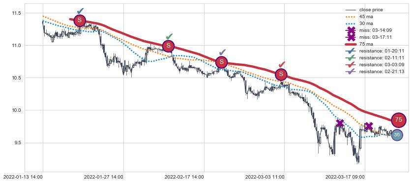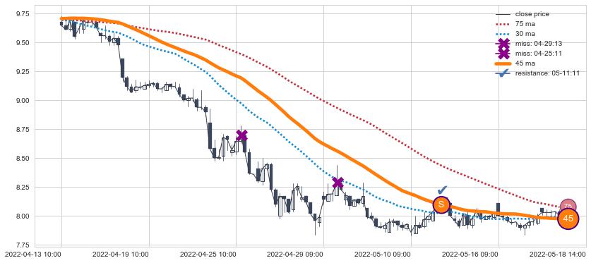 ⚂ 2022-06-29 14:00:00小时突然冒出一根大阴线,一下子下穿三条均线且收盘价收在各条均线之下