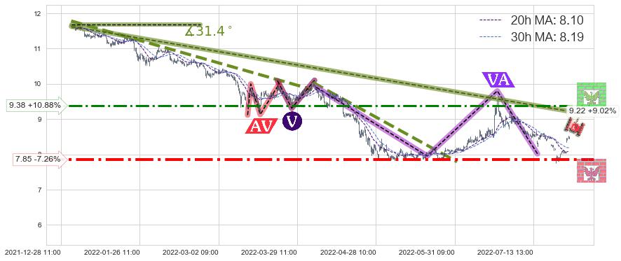 ♞ 20小时均线:8.10,30小时均线:8.19→ 快线<慢线