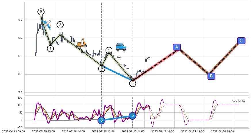 | 4 🅚:【高山滑雪】买入点 ➕ 🌊:波浪理论猜想下跌浪5已形成,猜想后续形成abc反弹上涨(均值回复) ☞ 看多信号 ⇥ 【均线】交织【图形】⇥ 综合量化分数: 52 | > |