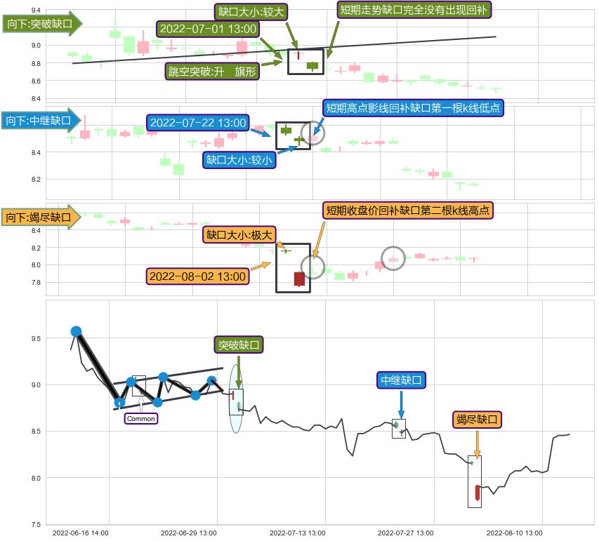 ➢ 2022-08-02 13:00形成:向下跳空【竭尽】缺口