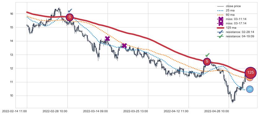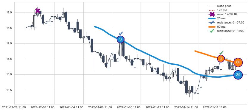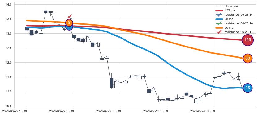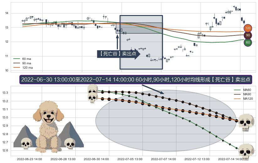 ⚀ 2022-06-30 14:00:00-小时至2022-07-14 14:00:00-小时显现 60小时-90小时-120小时均线 【死亡谷】卖出点 看空信号,后市看跌,卖出