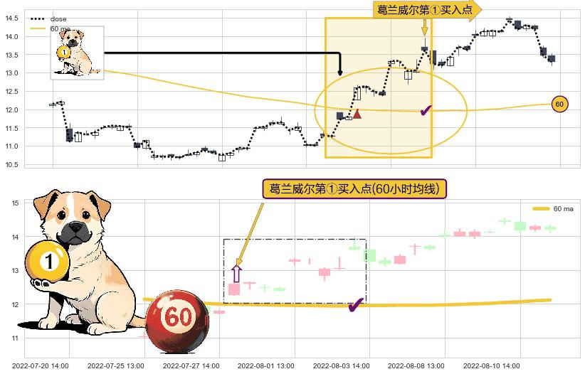 ⚀ 2022-07-28 13:00:00-小时显现 葛兰威尔均线 60小时均线 第买①入点 走势反转见底信号,后市看涨,买进信号