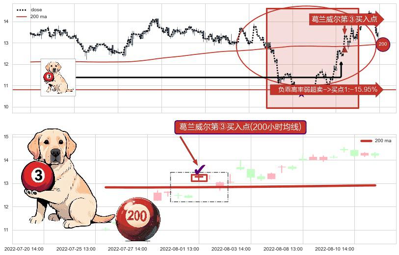 ⚀ 2022-08-01 13:00:00-小时显现 葛兰威尔均线 200小时均线 第③买入点 上升趋势的中继信号,后市看涨,买进信号