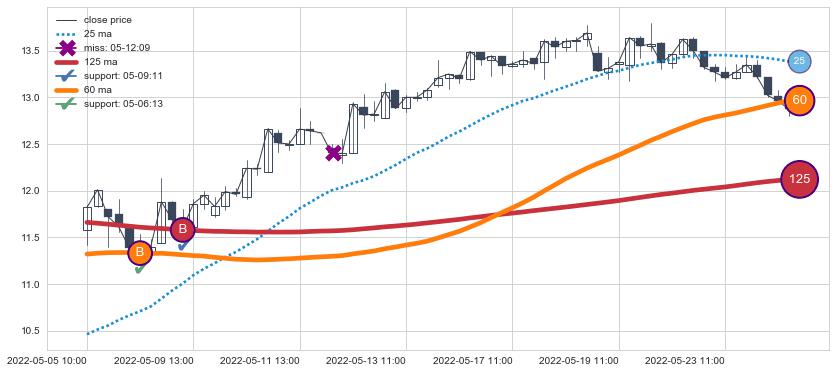 ⚂ 2022-06-30 13:00:00-小时均线向下破位,2022-08-01 13:00:00-小时重新上穿突破均线,均线支撑再次生效