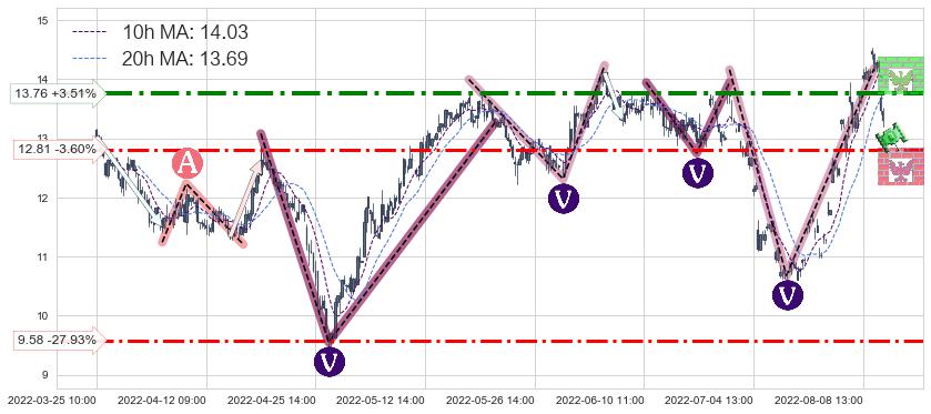 ♞ 10小时均线:14.03,20小时均线:13.69→ 快线>慢线