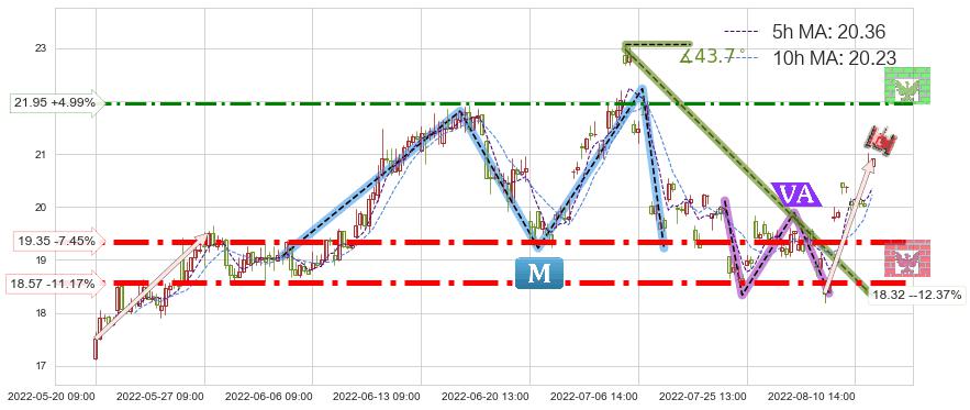 ♘ 支撑价格位19.35,可信任强度86.30%,距离最后交易2022-08-12 14:00形成的收盘价格20.91相差 -7.45%