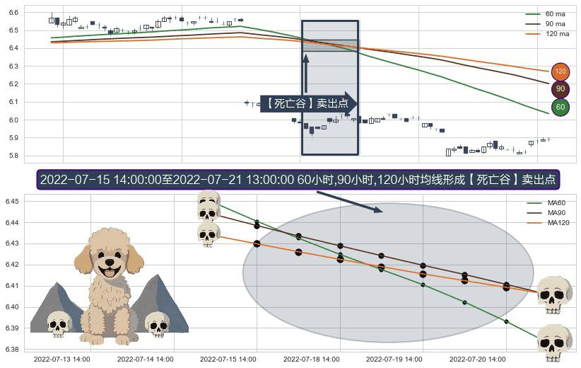 ⚀ 2022-07-18 13:00:00-小时至2022-07-21 13:00:00-小时显现 60小时-90小时-120小时均线 【死亡谷】卖出点 看空信号,后市看跌,卖出
