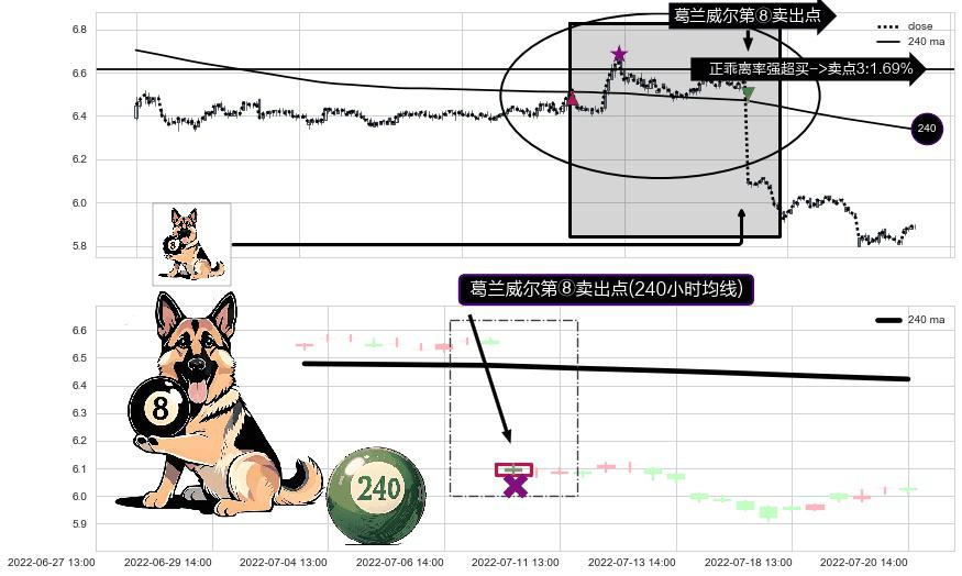 ⚀ 2022-07-08 13:00:00-小时显现 葛兰威尔均线 240小时均线 第⑧卖出点 下降趋势的中继信号,后市看跌,卖出信号