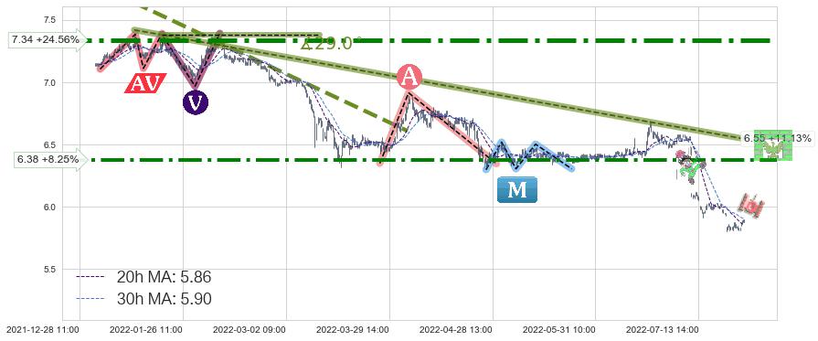 ♞ 20小时均线:5.86,30小时均线:5.90→ 快线<慢线