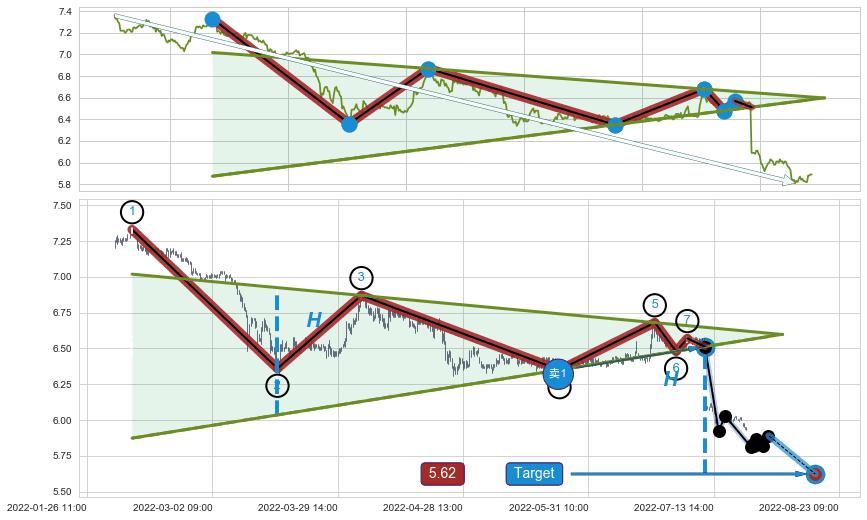 ➣ 【已确认突破】最后价格:5.89与最小【整理】第一目标价格→(08-23:09: 5.62 )相较: 下跌空间【较小】