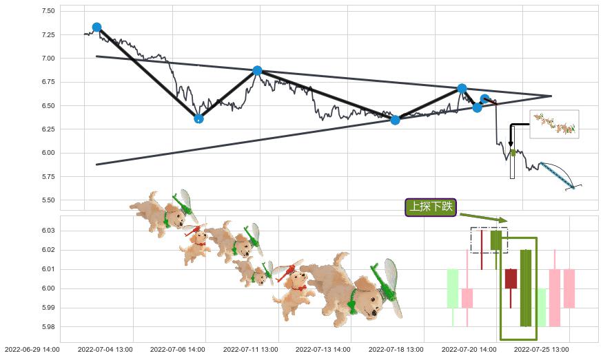 ➢ 高点影线(07-12:13: 6.12 )→回踩→第二根k线高点(07-08:13: 6.11 )
