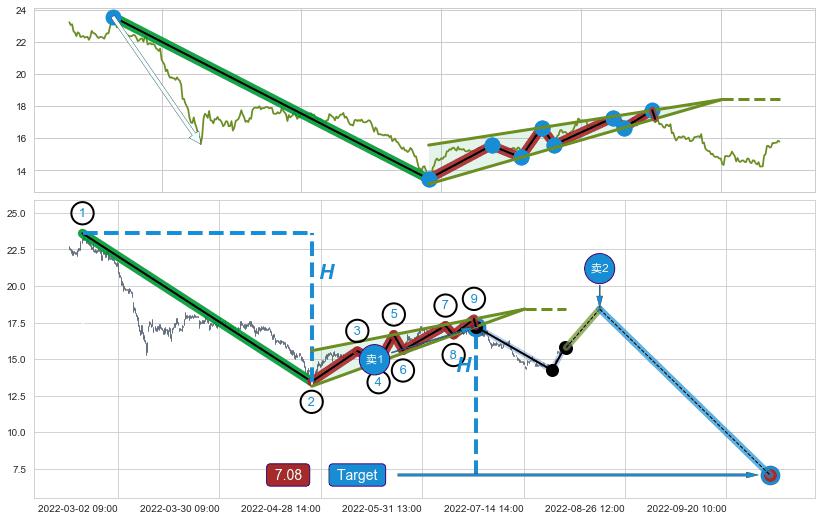 ➣ D点拟合预测价格22.52,距离最后交易收盘价格15.79相差 +42.65%