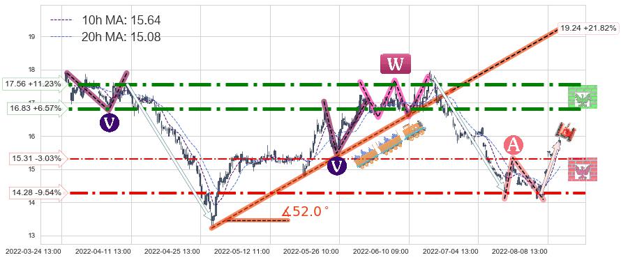 ♘ 阻力价格位16.83,可信任强度94.30%,距离最后交易2022-08-12 14:00形成的收盘价格15.79相差 +6.57%