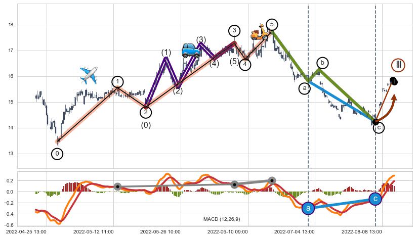 ➣ 第一, 三, 五浪上涨动能逐渐【衰弱变小】,趋势呈现不稳迹象