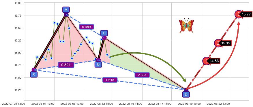 ➣ 未完成【蝴蝶】形态起点X: 07-26:14, 已到达C点: 08-11:14, 预测最终D点: 08-18:12, 共53交易小时