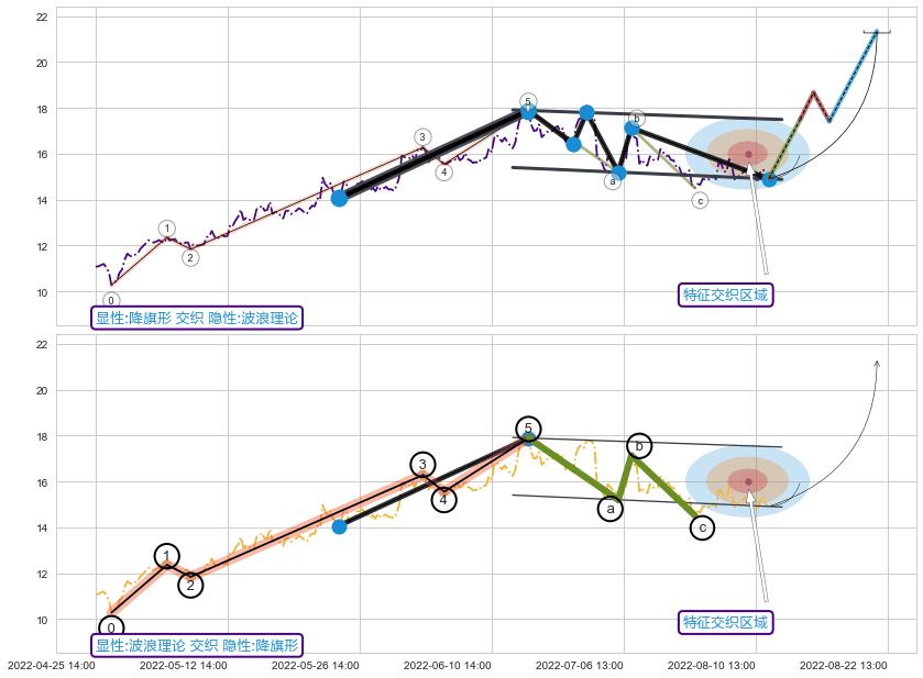 从2022-08-04 13:00至2022-08-12 14:00,共包含14个小时,阶段股价上涨0.23%,阶段股价变动位移路程比: 1 : 48