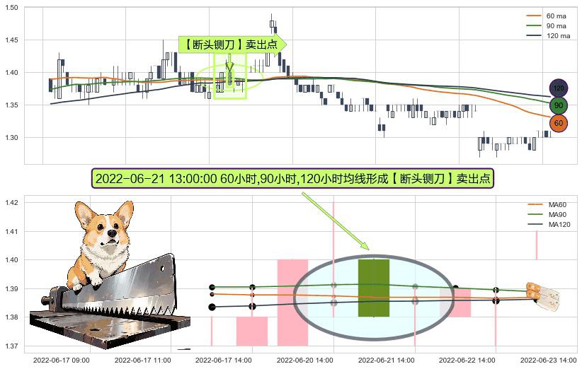 ⚀ 2022-06-21 13:00:00小时显现 60小时-90小时-120小时均线 【断头铡刀】卖出点 看空信号,后市看跌,卖出