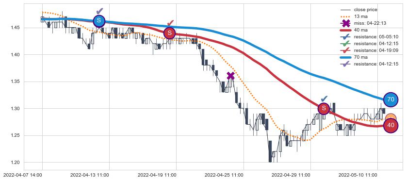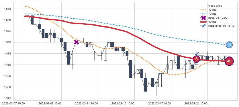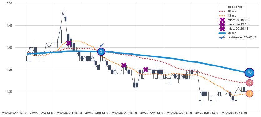 ⚄ 价格在均线遇到阻力后已再次向下回落了【较长】距离, 第⑦卖出点 阻力效果得到【初步确认】