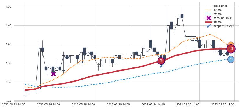 ⚀ 中期均线MA8上穿长期均线MA13形成的交叉是标准 黄金交叉