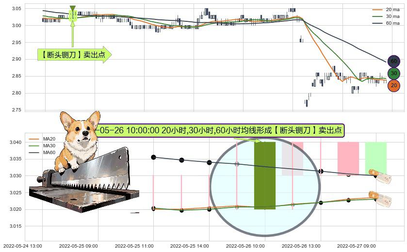 形态多维评估: ⚀ 2022-05-26 10:00:00小时显现 20小时-30小时-60小时均线 【断头铡刀】卖出点 看空信号,后市看跌,卖出