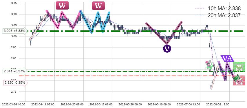 ➣ 【仅预测突破】最后价格:2.830与预测突破价格:2.817→【空间临近】后续最小【整理】第一目标价格→(08-19:10: 2.698 )