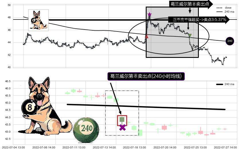 ⚀ 2022-07-14 13:00:00-小时显现 葛兰威尔均线 240小时均线 第⑧卖出点 下降趋势的中继信号,后市看跌,卖出信号