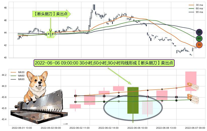 ⚀ 2022-06-06 09:00:00小时显现 30小时-60小时-90小时均线 【断头铡刀】卖出点 看空信号,后市看跌,卖出