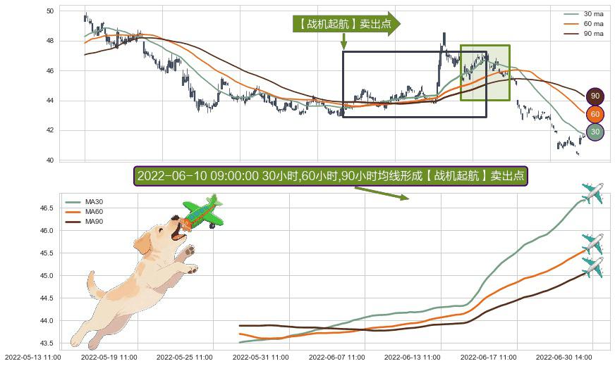 ⚀ 2022-05-26 14:00:00小时-2022-06-29 14:00:00小时显现 30小时-60小时-90小时均线 【战机起航】卖出点 看空信号,后市看跌,卖出