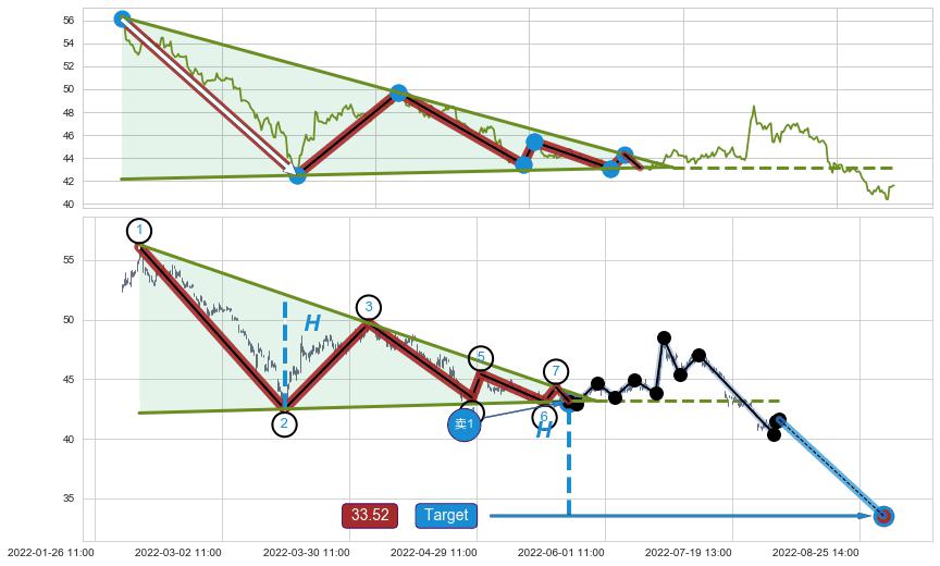 ➣ 【已确认突破】最后价格:41.61与最小【整理】第一目标价格→(08-30:12: 33.52 )相较: 下跌空间【较大】