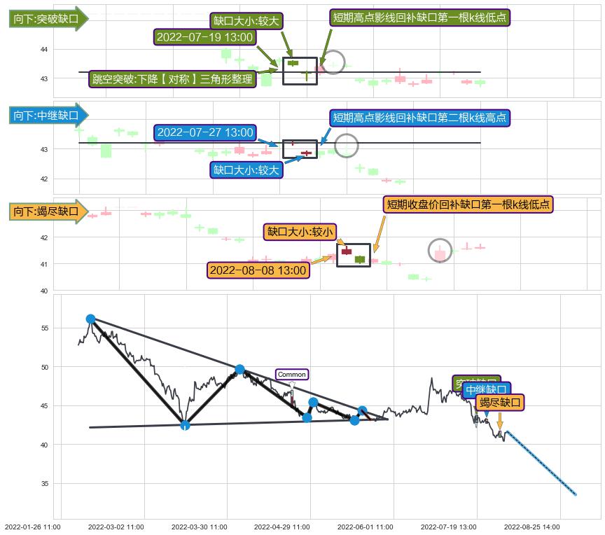 ➢ 2022-08-08 13:00形成:向下跳空【竭尽】缺口