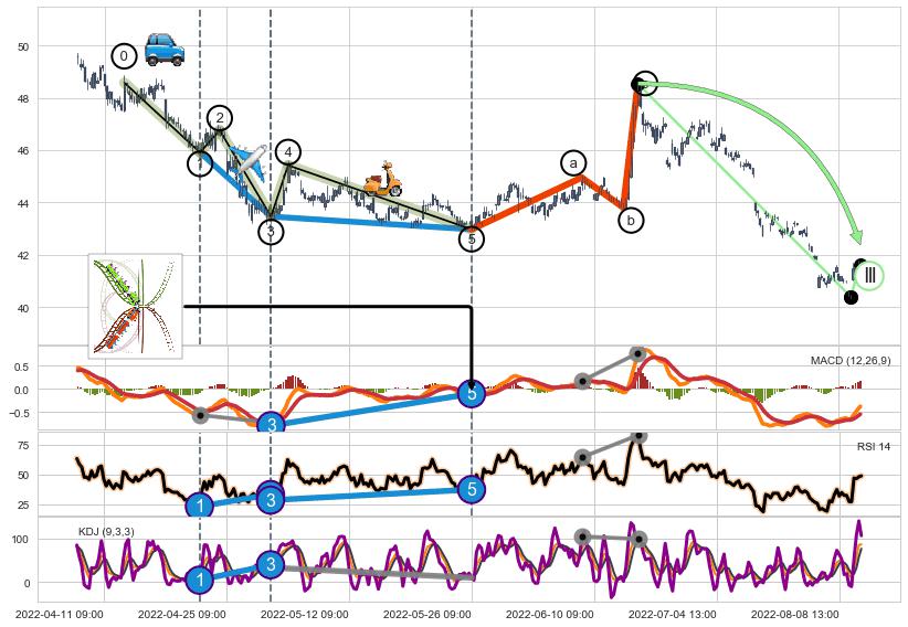 ➣ a,c调整浪MACD, RSI, KDJ走势都【未出现】背离,abc走势延续, 5浪反转概率增强