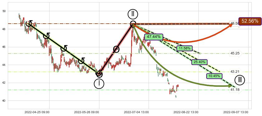 ➣ 循环浪继续向下【平均值】位置(08-30:14, 43.21),匹配聚类样本比例53.54%, 可能性概率25.40%