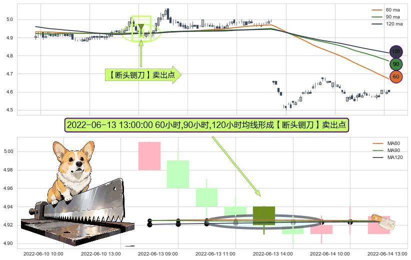 ⚀ 2022-06-13 13:00:00小时显现 60小时-90小时-120小时均线 【断头铡刀】卖出点 看空信号,后市看跌,卖出