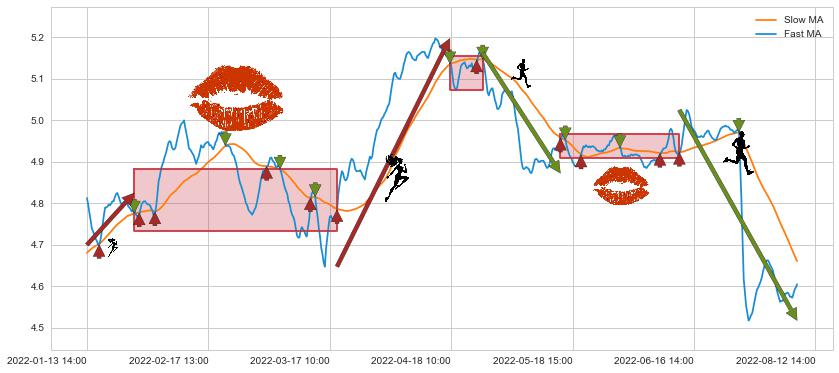 05-17 09:00至06-14 11:00 慢线与快线多次接触,存在上下穿越,有缠绕