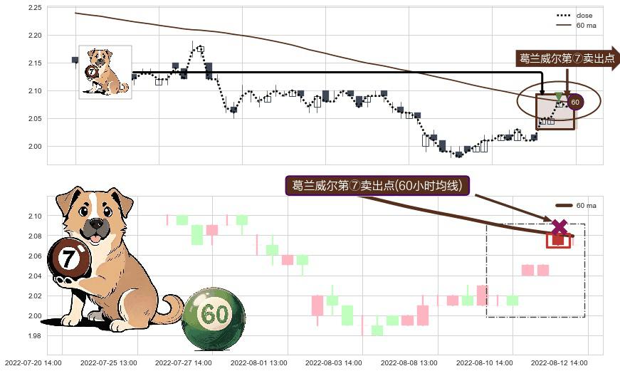 形态多维评估: ⚀ 2022-08-12 13:00:00-小时显现 葛兰威尔均线 60小时均线 第⑦卖出点 下降趋势的中继信号,后市看跌,卖出信号