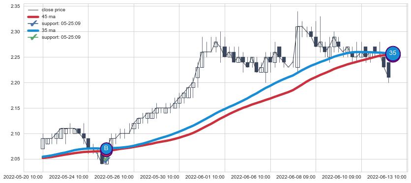 上涨趋势05-20 10:00-06-13 10:00,均线35, 45确认关键支撑1处