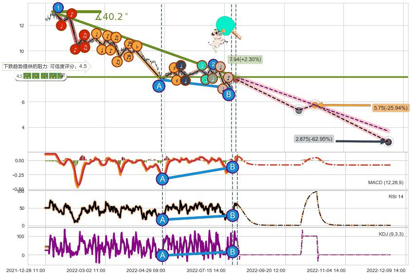 ➣ 预测:2022-10-13 14:00,【试探阻力】稳定目前下跌趋势的前提下,预测价格:5.75