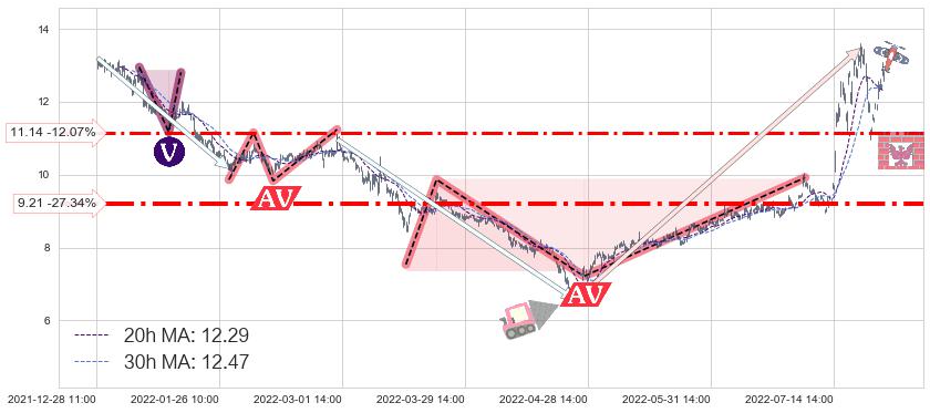♞ 20小时均线:12.29,30小时均线:12.47→ 快线<慢线