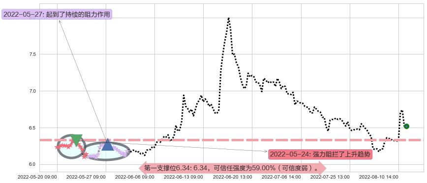 ♘ 支撑价格位6.34,可信任强度59.00%,距离最后交易2022-08-12 14:00形成的收盘价格6.52相差 -2.83%