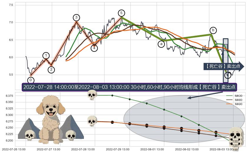 ➣ 🕰 价格走势在2022-07-29 13:00:00至2022-08-03 14:00:00期间形成【死亡谷】卖出点,残存影响值:-42.49