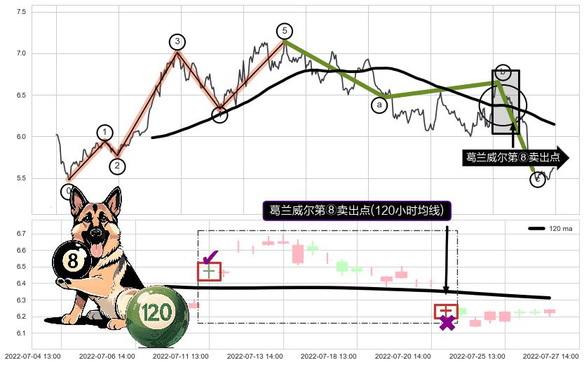 ➣ 🕰 价格走势在2022-07-11 13:00:00至2022-07-25 13:00:00期间形成葛兰威尔第⑧卖出点,残存影响值:-16.85