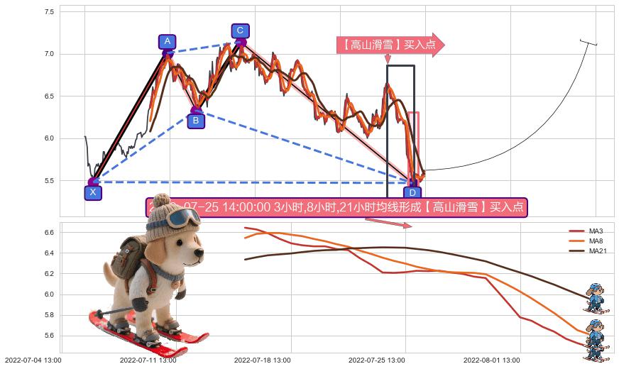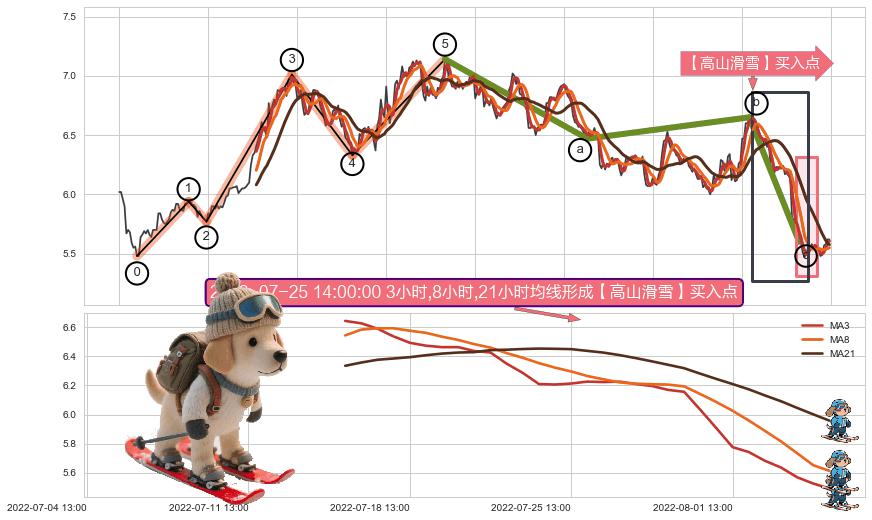 ➣ 🕰 价格走势在2022-08-01 14:00:00至2022-08-08 14:00:00期间形成【高山滑雪】买入点,残存影响值:18.44