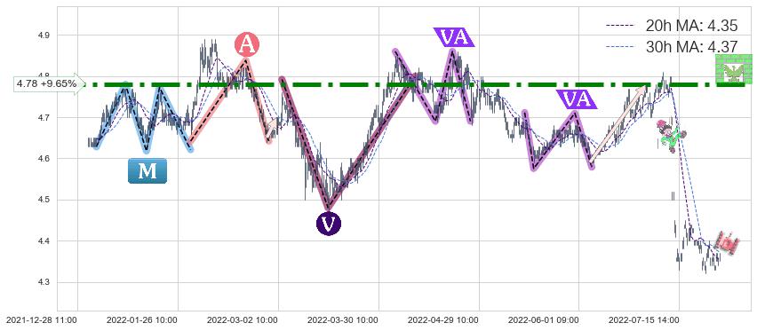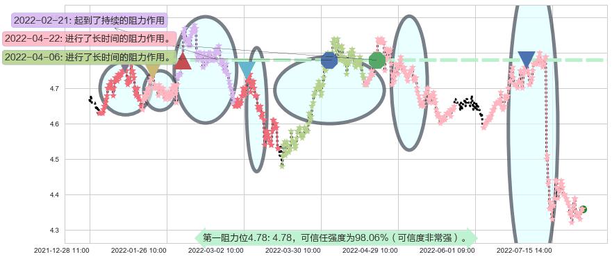 2022-07-05: 第一阻力位4.78强力阻拦了上升趋势,成功阻止了价格的继续上涨。