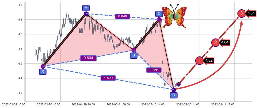 ➣ 已完成【蝴蝶】形态起点X: 03-16:10, 终点D: 08-03:14, 共377交易小时