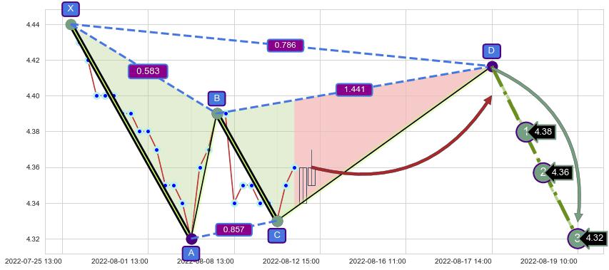 ➣ 未完成【伽利】形态起点X: 07-25:14, 已到达C点: 08-10:14, 预测最终D点: 08-17:14, 共48交易小时
