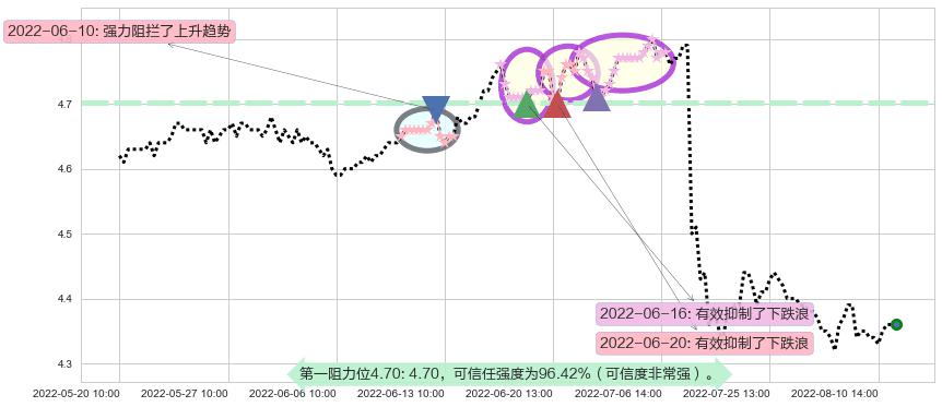 ♘ 阻力价格位4.70,可信任强度96.42%,距离最后交易2022-08-12 14:00形成的收盘价格4.36相差 +7.85%