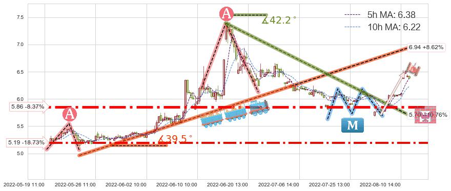 ♞ 5小时均线:6.38,10小时均线:6.22→ 快线>慢线