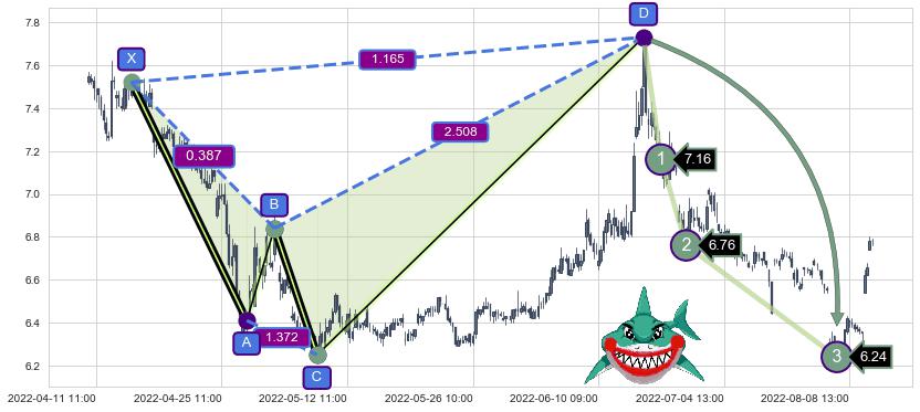 ➣ 已达成看跌【鲨鱼】形态全部的预期目标