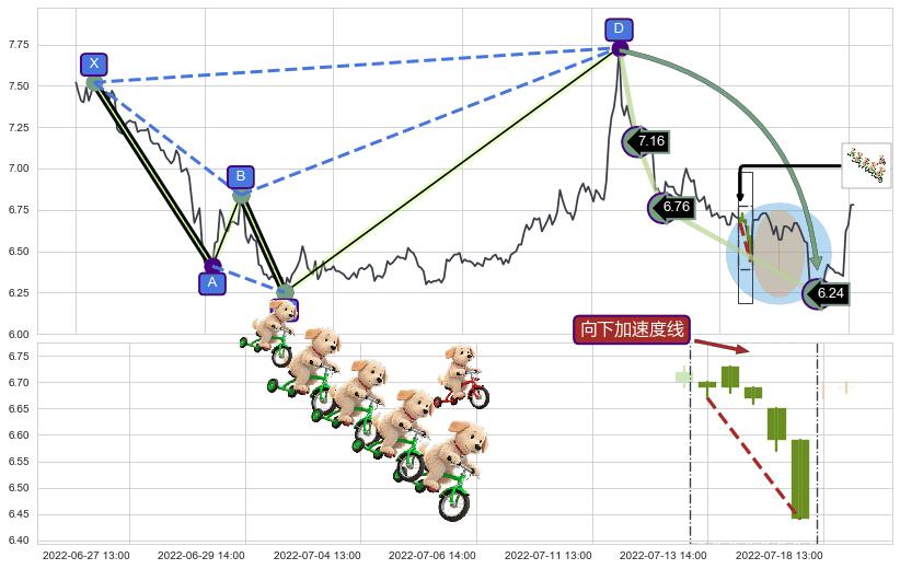 ➣ 已完成【鲨鱼】形态起点X: 04-14:10, 终点D: 06-15:13, 共205交易小时