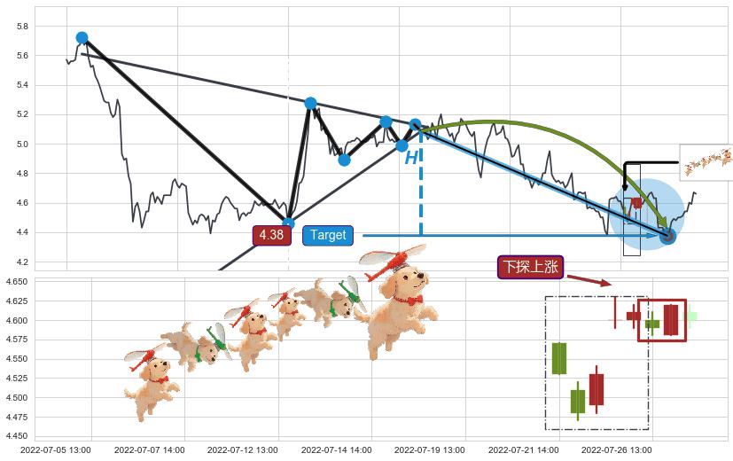 ➣ 【已达成】最小【整理】第一目标价格→(08-04:13: 4.38 ), 后续继续【整理】下跌动力依然存在,下跌空间适中